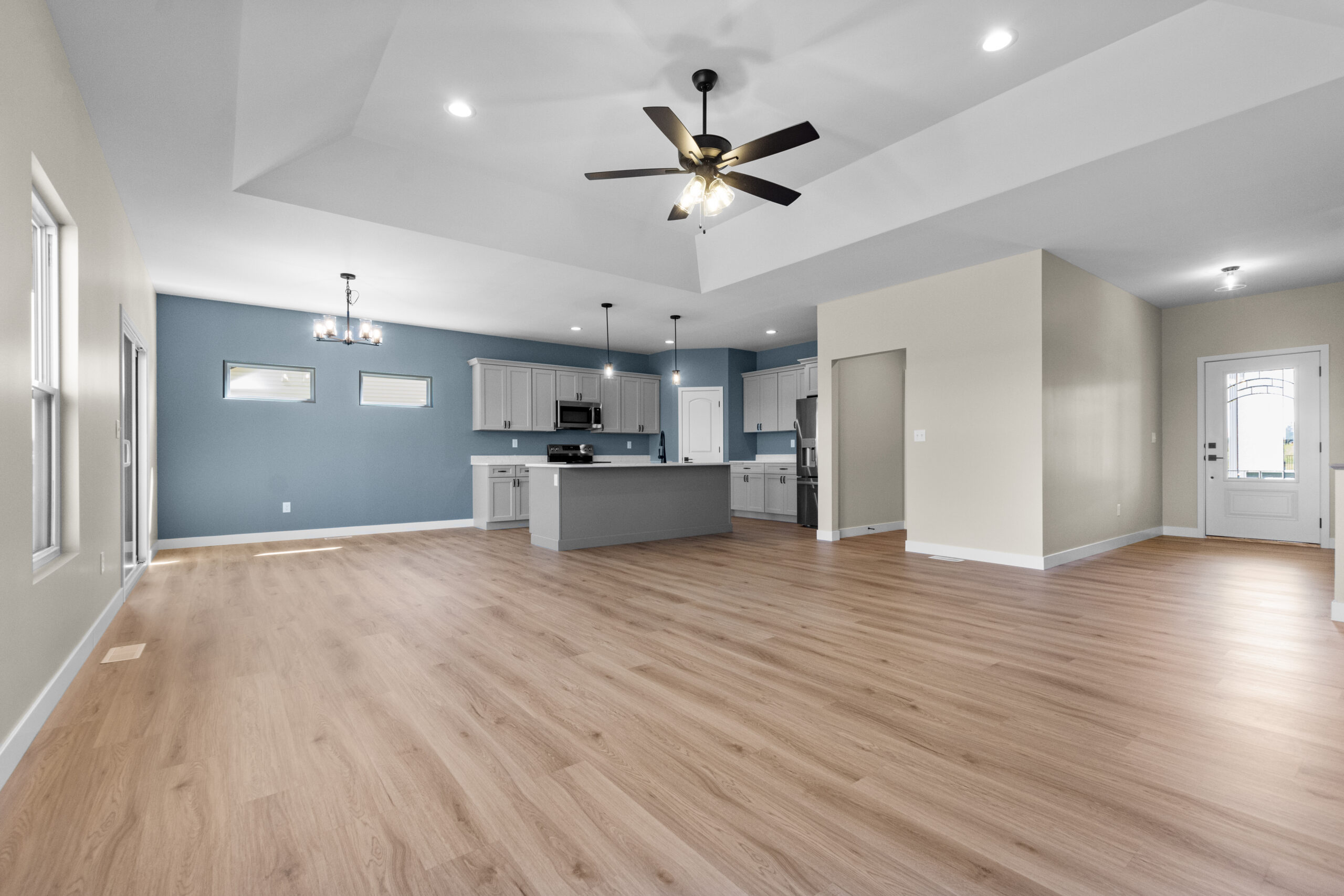 - Luxury Vinyl Plank Flooring for Main Areas (Kitchen, Great Room, Pantry, Foyer, & Hall Walls)